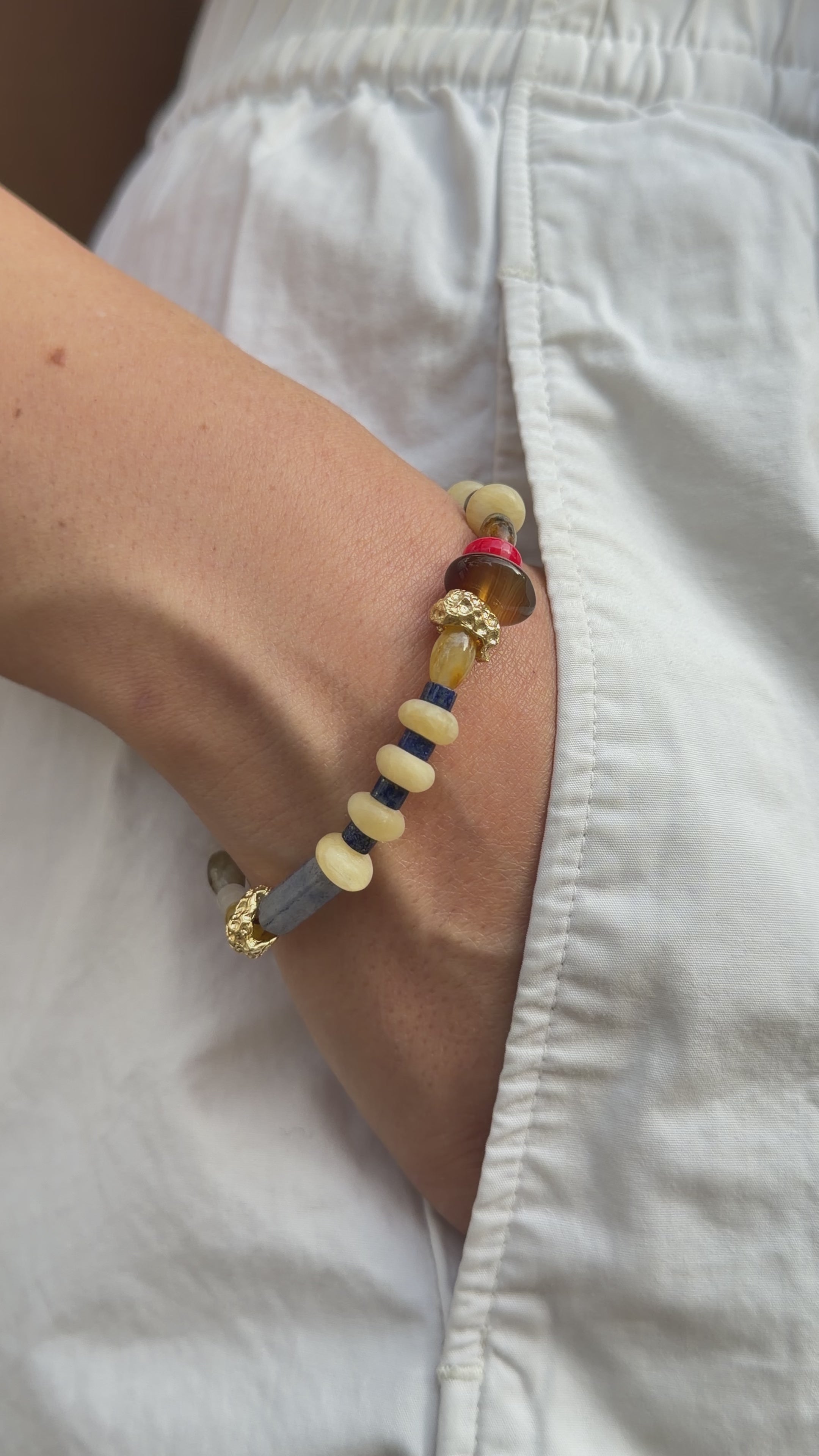The beads are gold-plated, complementing the unique design of this bracelet.