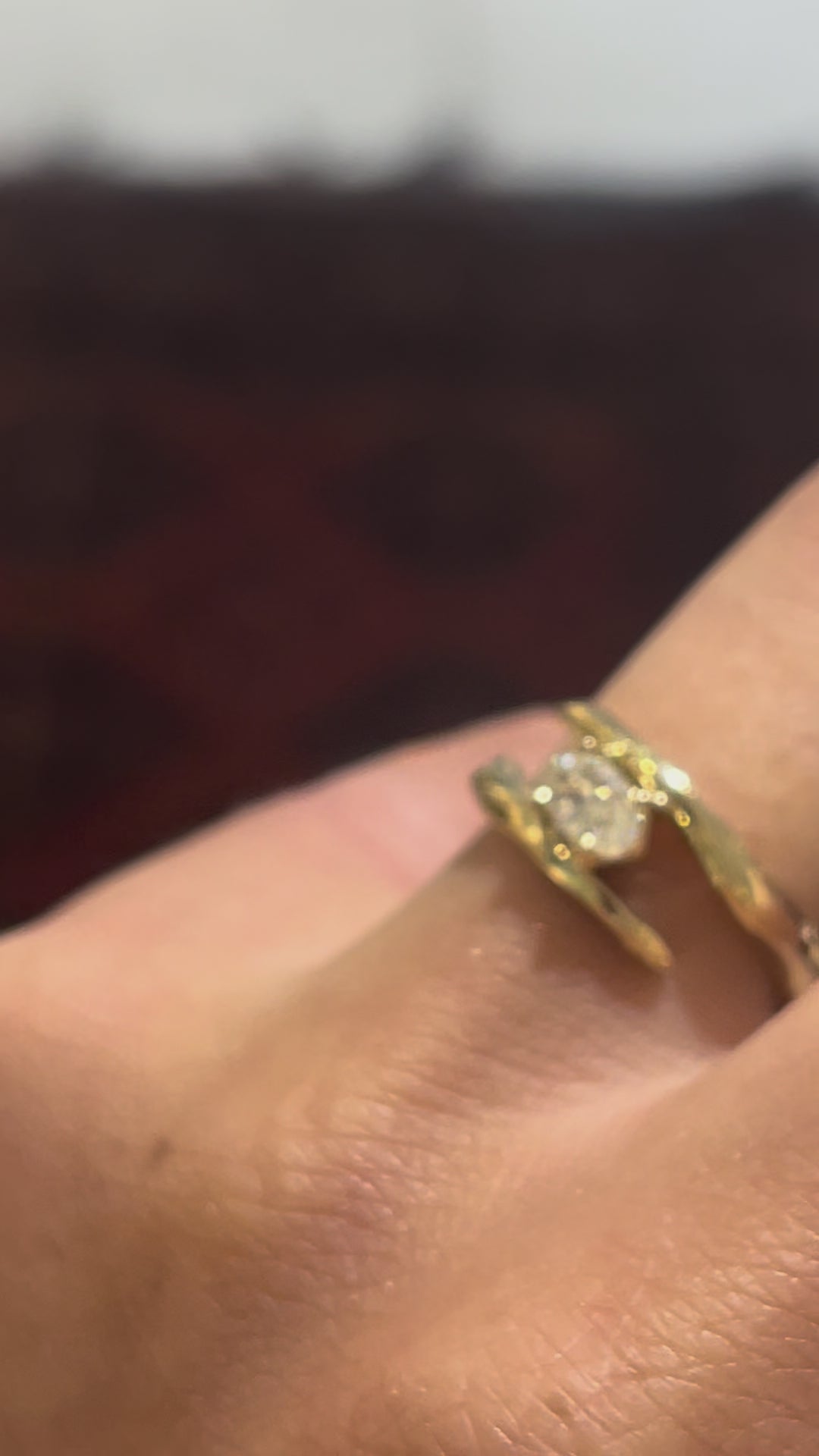 A classic and timeless ring featuring hammered arms that gently embrace a center diamond.